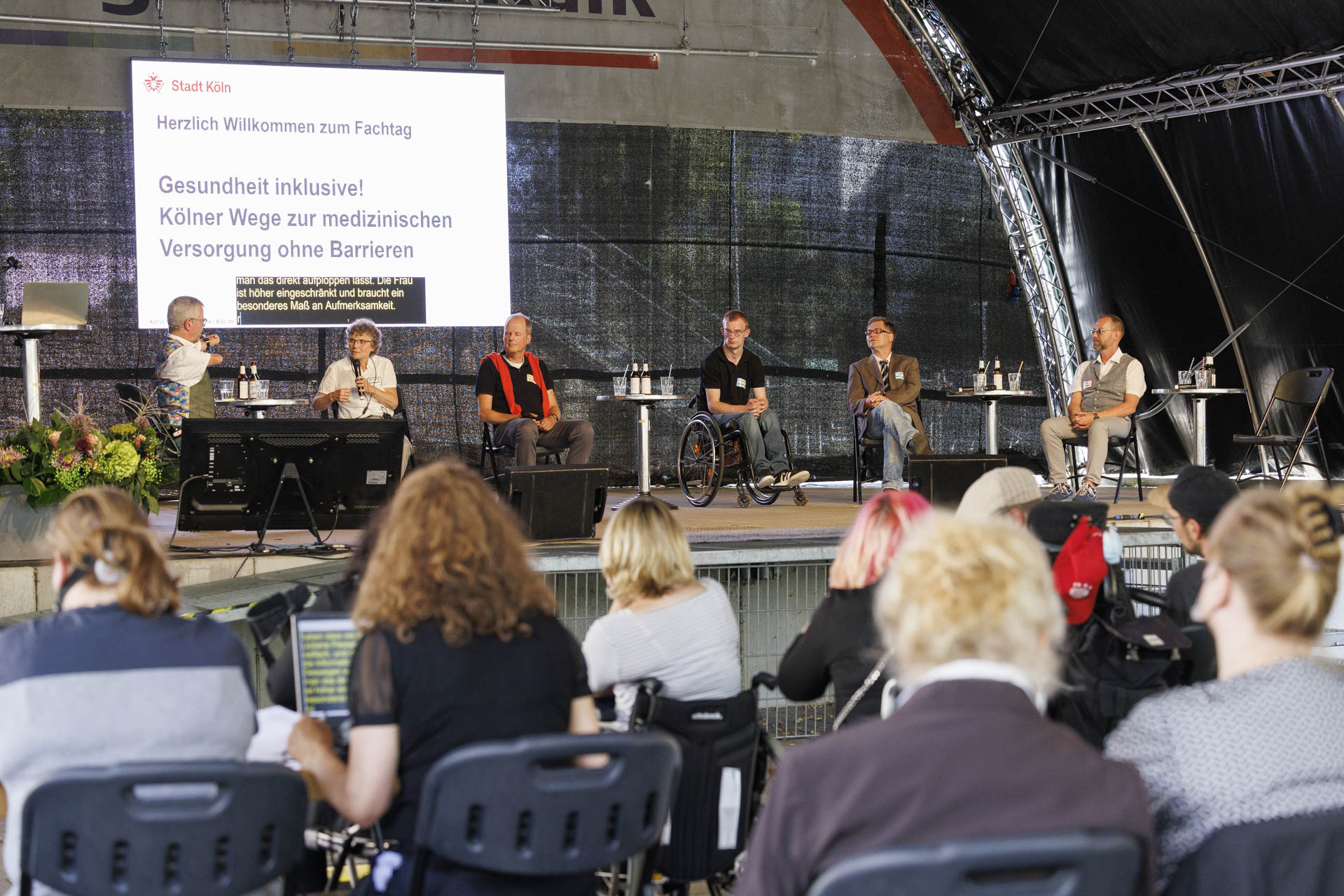Zum Kölner Tag der Menschen mit Behinderung 2022 fand am 12. September 2022 im Kulturhof des Bürgerhauses Kalk eine Fachveranstaltung mit dem Titel "Gesundheit inklusive! Kölner Wege zur medizinischen Versorgung ohne Barrieren" statt.