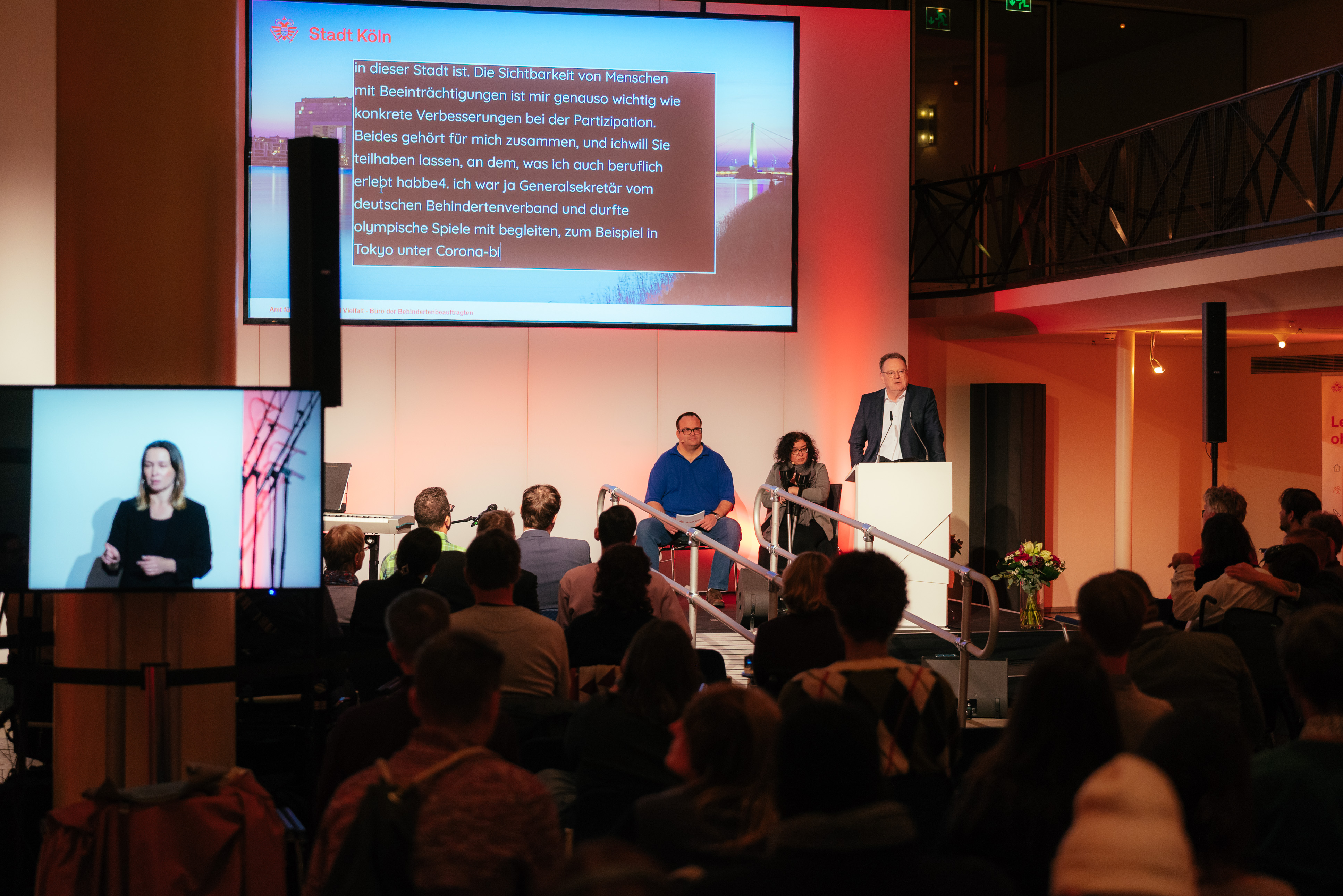 Im historischen Ambiente des Gürzenich wurde der Kölner Innovationspreis Behindertenpolitik 2025 verliehen. Zahlreiche Zuschauer*innen kamen zusammen, um wegweisende Projekte kennenzulernen und zu feiern.