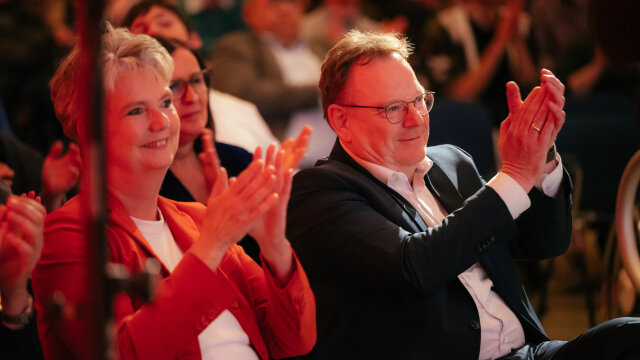 Die Veranstaltung wurde von Mirjam Tomše, unserer Behindertenbeauftragten, und Heinz-Peter Helmes, stellvertretendes Mitglied der Stadtarbeitsgemeinschaft Behindertenpolitik, moderiert. Um allen Gästen einen möglichst barrierefreien Zugang zu ermöglichen, wurde sie von Gebärdensprachdolmetscher*innen, einer Schriftdolmetschung sowie einer Übersetzung in Leichte Sprache begleitet.