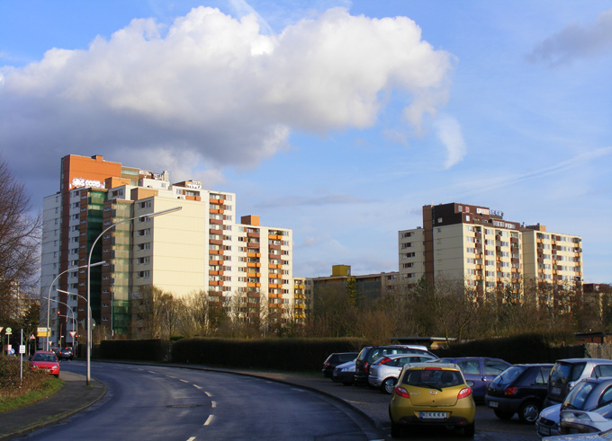 Bürgerzentrum, Fußgänger- und Einkaufszone, Hoffnungskirche, Kinder-Musik-Theater "Der Spaß!" und Sankt Maximilian Kolbe