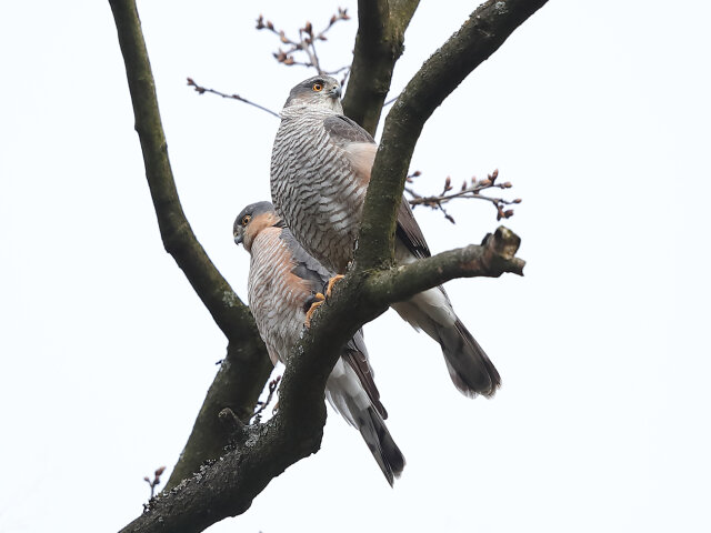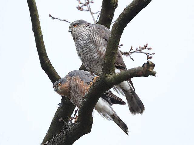 Männliche und weibliche Sperber ernähren sich hauptsächlich von Kleinvögeln.