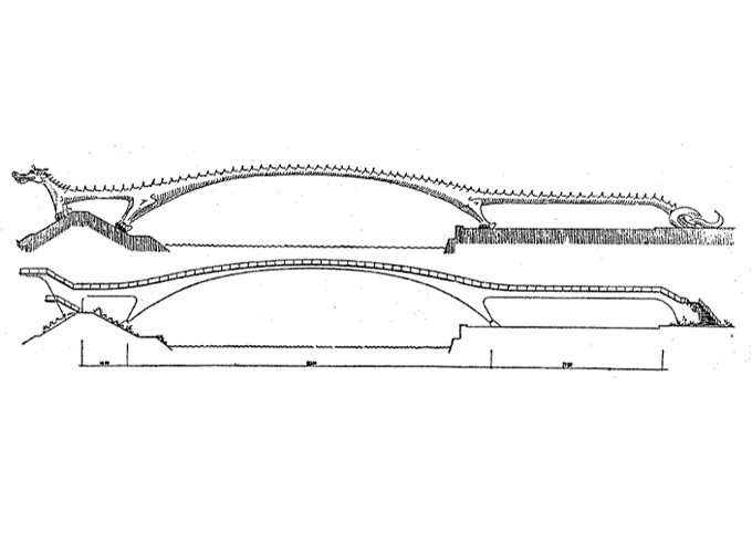 Die Spannweite des Bogens der Brücke beträgt 90,50 Meter. Die Gesamtstützweite beträgt 171,40 Meter.