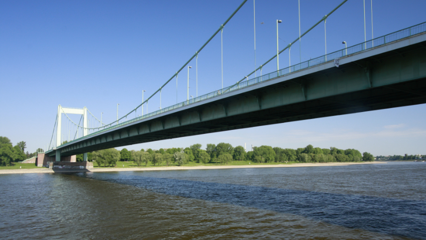 Dabei wurden die Zugkräfte der Tragseile vom versteiften Fahrbahnträger als Druckkräfte aufgenommen. Somit konnten schwere Ankerkörper vermieden werden, die man damals im Kölner Baugrund als nicht ausführbar betrachtete.