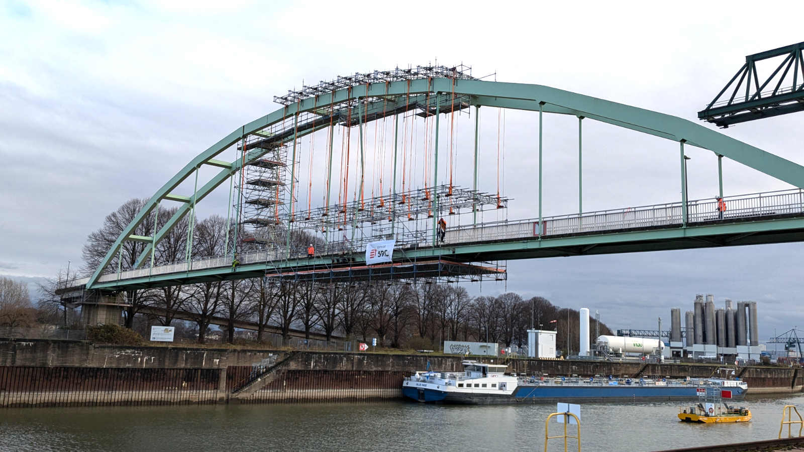 Um den unterhalb der Hafenbrücke verlaufenden Schiffsverkehr aufrecht zu erhalten, haben wir die Standsicherheit der Brücke durch eine Notinstandsetzung wiederhergestellt. Wir haben sichergestellt, dass keine Bauteile durch Wind, Sturm oder andere Witterungseinflüsse gelöst wurden und Schäden verursachen. Eine Überprüfung des gesamten Schadenbilds sowie ein Instandsetzungskonzept an der Stahlkonstruktion der Bogenbrücke Niehler Hafen haben wir umgehend veranlasst.