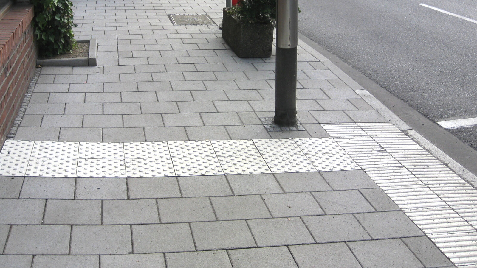 Zu unserer Straßenplanung gehören deshalb ertastbare und kontrastreiche Strukturen, die Menschen mit Sehbehinderung leiten, bei der Orientierung helfen und sie an gefährlichen Stellen warnen: