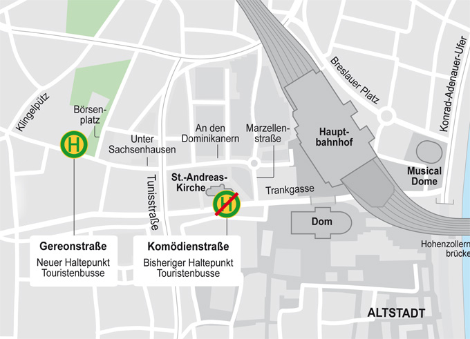 • Fußläufige Entfernung zum Dom/Hauptbahnhof: circa 500 Meter