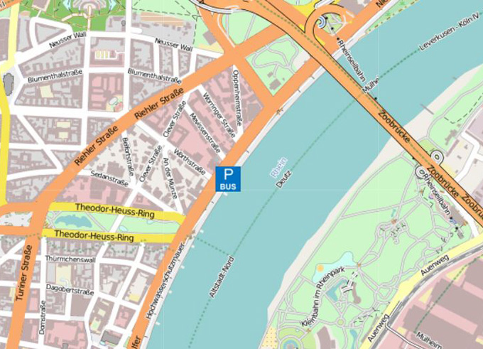 Adresse für Navigationsgeräte: Konrad-Adenauer-Ufer 80, 50668 Köln