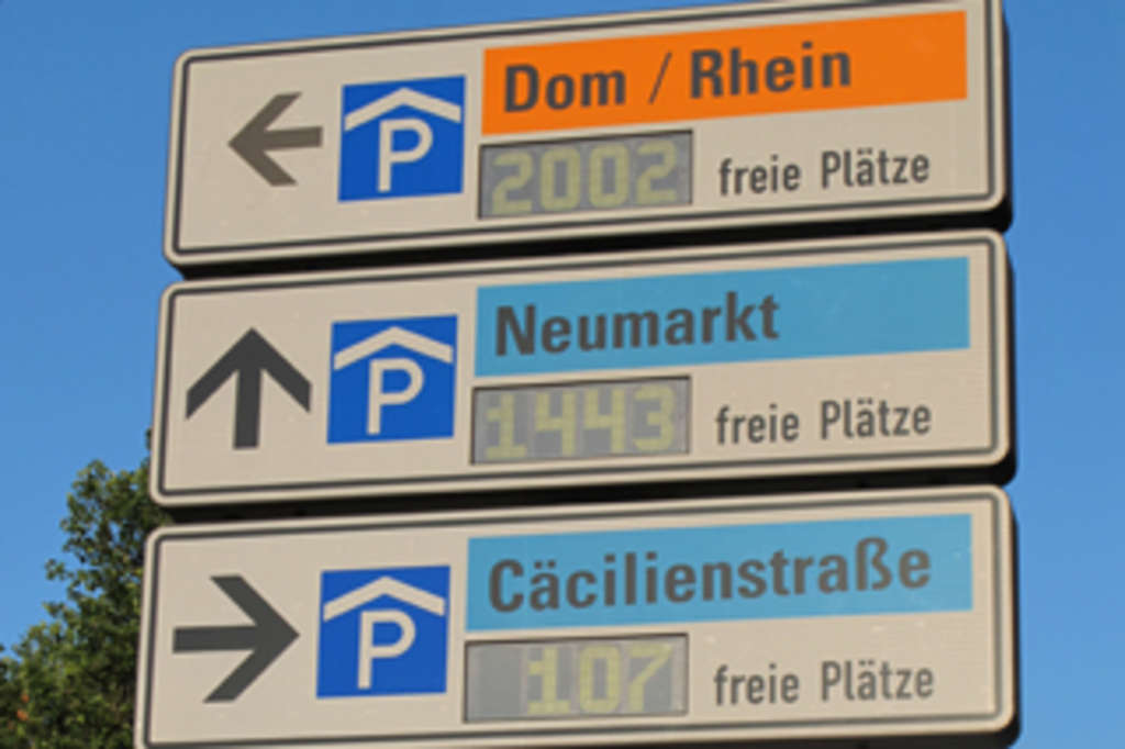 Das Parkleitsystem sagt Ihnen, wo und wie viele freie Parkplätze in den Parkhäusern der Kölner Innenstadt zu finden sind. Dafür ist die Innenstadt in vier Parkquartiere geteilt.