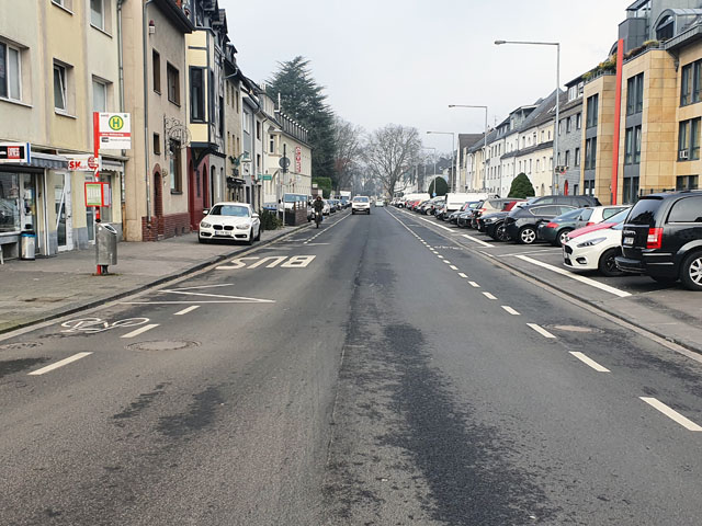 Nach Sanierung der Fahrbahndecken haben wir auf dem Alten Militärring im Abschnitt zwischen Aachener Straße und Wendelinstraße die Verkehrsfläche neu aufgeteilt. Ab sofort verfügen beide Fahrtrichtungen nun über einen Schutzstreifen für Radfahrende.