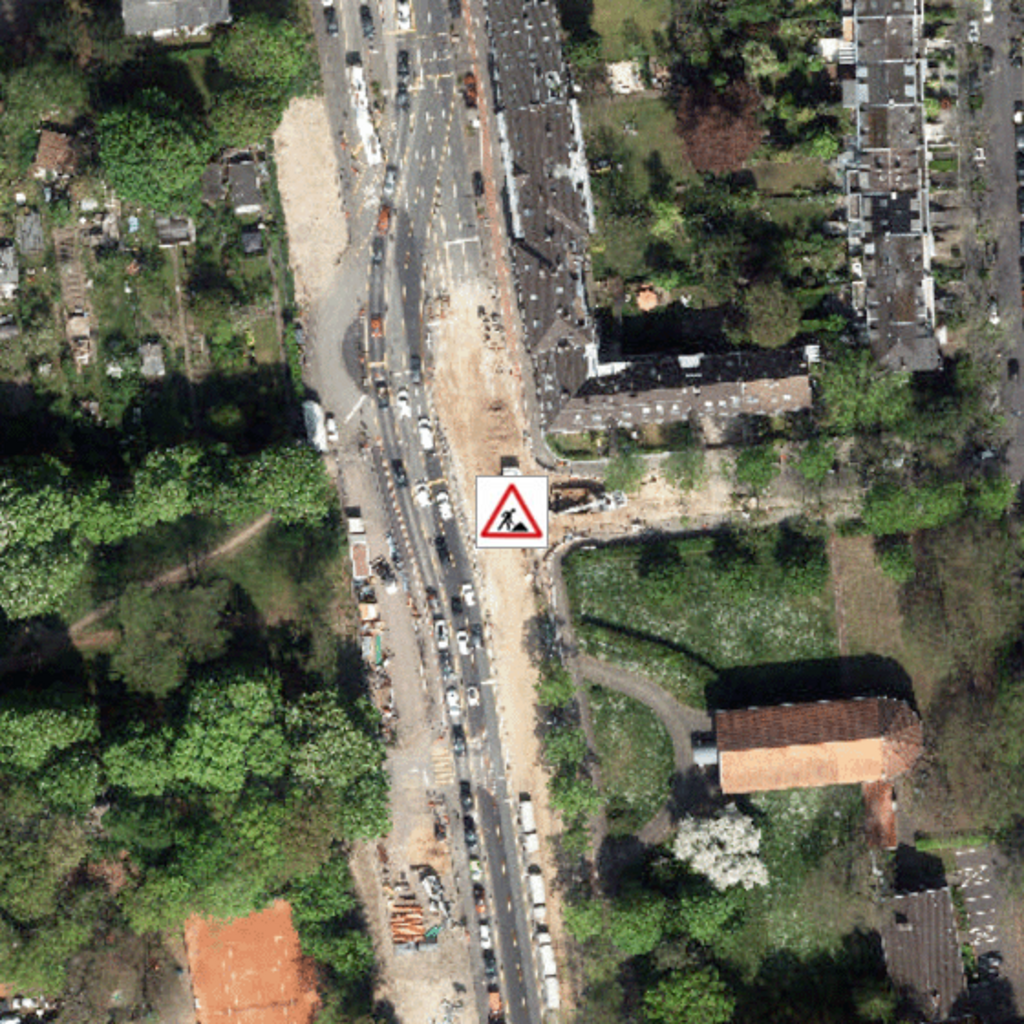 Bitte fahren Sie vorsichtig im Baustellenbereich und planen Sie zusätzliche Fahrzeit ein.