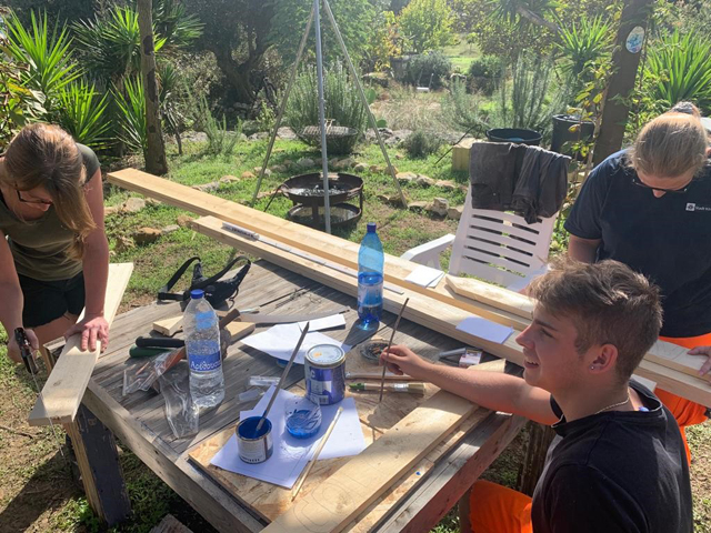 Aber der Pfad war nicht unser einziges Projekt. Neben dem steinigen Pfad gab es auch Einiges zu tun: Sei es das kreative Erschaffen eines Wegweisers für Touristen, das Anlegen eines Kakteenbeetes oder der Bau eines Unterstandes aus Holz. Es gab immer etwas zu tun. Alle hatten eine Aufgabe gefunden, die Spaß machte und sie gleichzeitig gefordert hat.