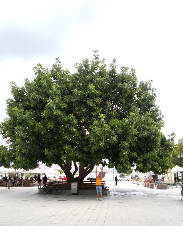 Am nächsten Tag besuchten wir zunächst den Petani-Strand und die Stadt Lixouri. Wunderschöne und abwechslungsreiche Landschaften säumten unsere Autofahrten und es gab so viel zu entdecken! Mir persönlich ist besonders die Flora und Fauna der Insel im Gedächtnis geblieben, die mich während des gesamten Aufenthaltes oft faszinierte. So entdeckten wir beispielsweise einen eindrucksvollen Gummibaum in der Ortsmitte von Lixouri, welcher bei uns in Deutschland selten über 1,5 Meter hoch wird.