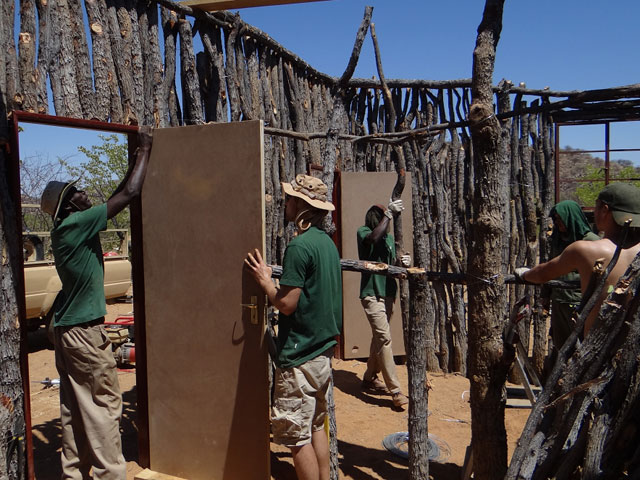 Das zweite große Projekt dauerte zwei Wochen und bestand aus dem Bau einer Hütte, an einer schon bestehenden Wasserstelle. Diese Hütte soll als Schutz für Ranger dienen, um diese in der Nacht vor Raubtieren zu schützen. Die vor Ort ausgebildeten Ranger halten sich in der Nähe der Wasserstellen auf, um die Tiere vor Wilderern zu schützen. Außerdem kümmern sie sich um die Solarpumpen und passen auf, dass diese nicht gestohlen werden.