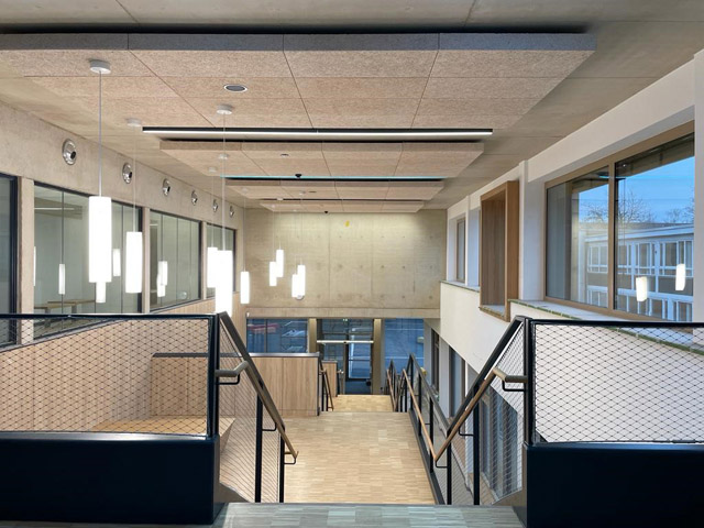 Mit diesem Projekt vollendeten wir die Erhöhung der Klassen pro Jahrgangsstufe von 3 auf 4 in der Sekundarstufe I sowie von 5 auf 6 in der Sekundarstufe II mit zusätzlichen 195 Schulplätzen baulich. Die Zahl der Schulplätze an diesem Standort stieg damit auf 1.000. Die zusätzlich geschaffene Nutzfläche beträgt rund 5100 Quadratmeter. Der Neubau wurde unter unserer Leitung in Anlehnung an die  klimaschonende Passivhausbauweise errichtet. Dazu gehören eine sehr gute Wärmedämmung, spezielle Fenster mit Dreifachverglasung, Lüftungswärmerückgewinnung, hohe Luftdichtheit und weitgehende Wärmebrückenfreiheit. Darüber hinaus wurden neun Bäume neu gepflanzt.