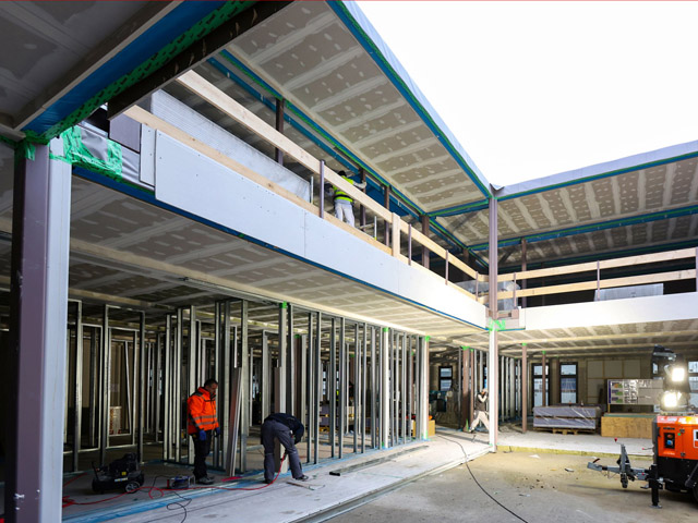 Schon zwei Monate später konnten wir im März gemeinsam mit der Schulgemeinschaft, Vertreter*innen der Politik und den am Bau Beteiligten das Richtfest feiern. Spätestens im vierten Quartal 2025 wollen wir das Gebäude an die Schule übergeben. Bis dahin stehen  noch Anschlussarbeiten etwa für Strom und Sicherheitstechnik an. Auch Funktions- und Sachverständigenprüfungen sowie Abnahmen und Unbedenklichkeitsprüfungen von Trinkwasser und Raumluft finden noch statt. Abschließend gestalten wir die Außenanlagen mit Bepflanzung.