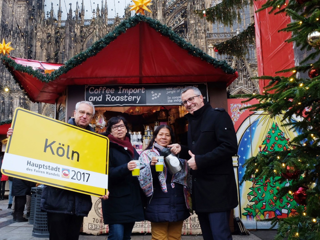 In der Adventszeit sind die Kölner Weihnachtsmärkte ein beliebter Treffpunkt für Einheimische und Tourist*innen. Damit bieten sie eine besondere Chance, das Thema Fair Trade stärker im öffentlichen Bewusstsein zu verankern. Seit 2014 werden die Konzessionen für Weihnachtsmärkte unter der Bedingung vergeben, möglichst fair produzierte oder ökologisch angebaute Produkte zu verkaufen.