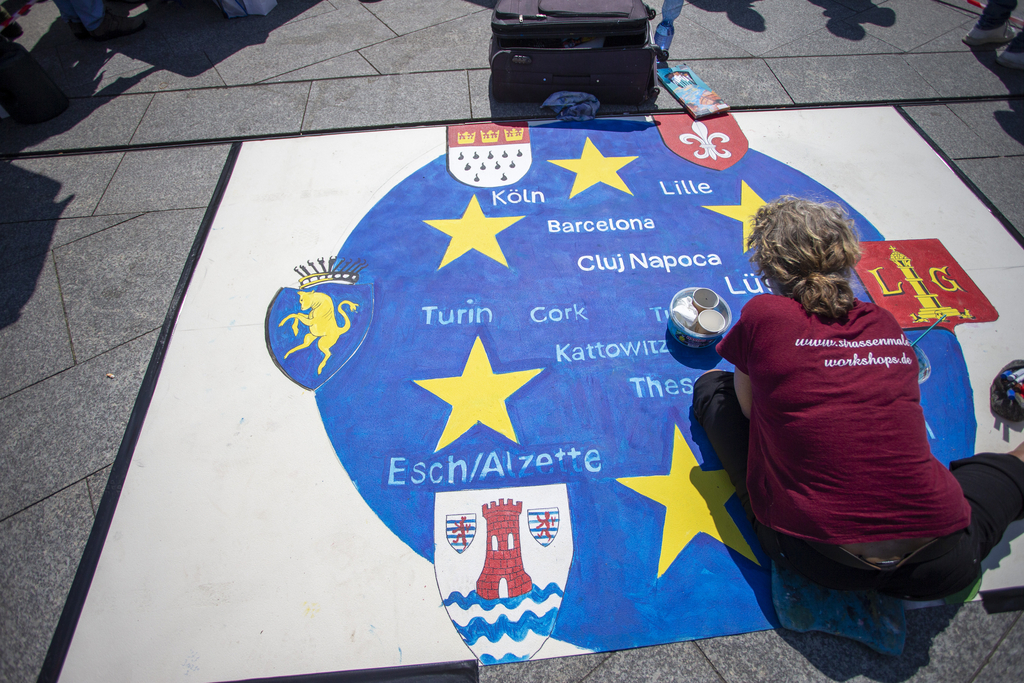 Anlässlich des Europatags am 9. Mai 2024 hatten die Kölner Fördervereine dieser Städtepartnerschaften zusammen mit der Bürgerinitiative "Pulse of Europe" alle Kölner*innen zur "Aktion Götterfunken" aufgerufen. Diese bestand daraus, gemeinsam auf der Domtreppe die Europa-Hymne "Freude, schöner Götterfunken!" zu singen.