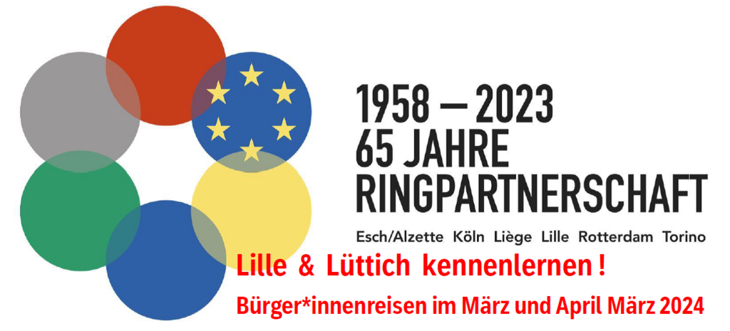 Seit dem 3. Juli 1958 sind wir mit den Städten Esch-sur-Alzette (Luxemburg), Lille (Frankreich), Lüttich (Belgien), Rotterdam (Niederlande) und Turin (Italien) durch eine Städtepartnerschaft verbunden. Da diese Städte an diesem Tag einen "Verschwisterungseid" miteinander geschlossen hatten, nennen wir dieses gemeinschaftliche Bündnis "Ringpartnerschaft". Sie alle liegen in den Gründerländern der damaligen Europäischen Wirtschaftsgemeinschaft (EWG).