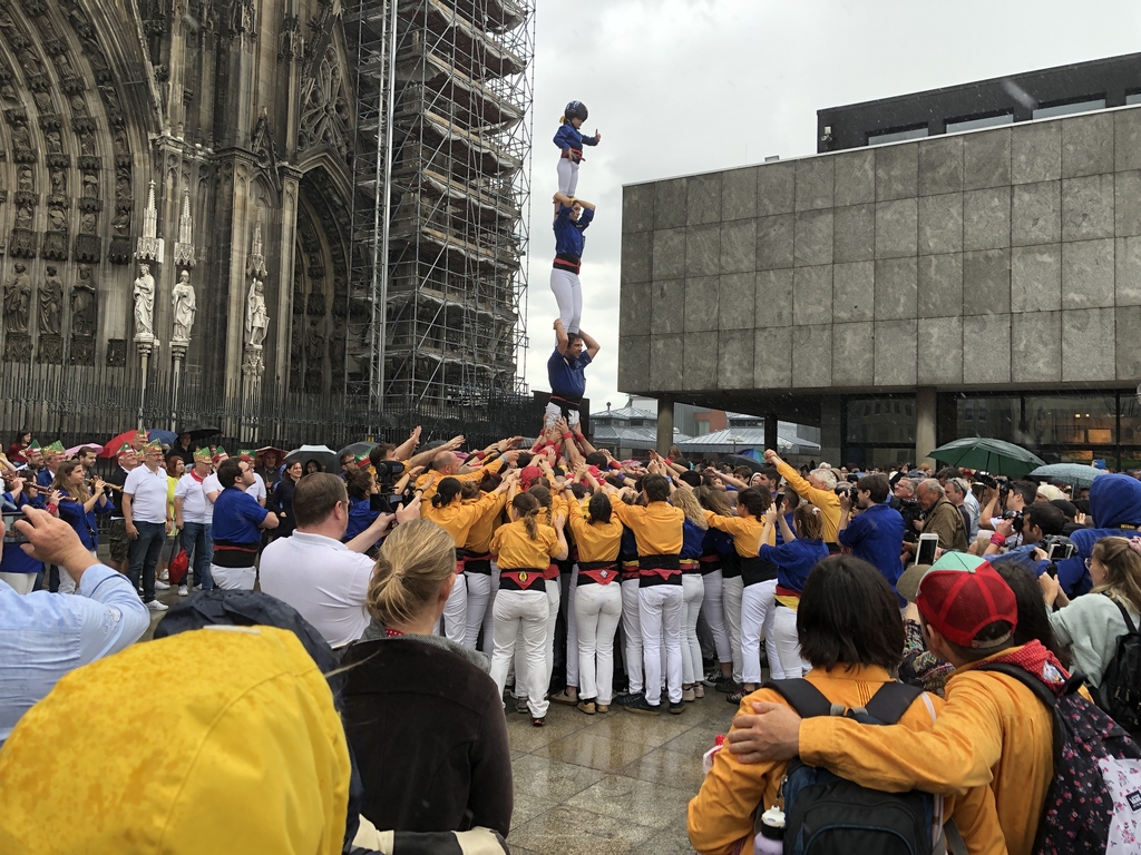 Zuletzt sorgte der Auftritt von "Castellers" aus Barcelona vor dem Kölner Dom 2022 für Furore. Die sogenannten Menschenturmbauer sind ein Wahrzeichen der Kultur Kataloniens und weltberühmt. Nach Köln sind sie im Rahmen des Projektes "3 x UNESCO Weltkulturerbe – Castellers, Kölner Dom und Kölner Karneval" in Kooperation mit dem Städtepartnerschaftsverein und den "Kölner Altstädtern" gekommen.