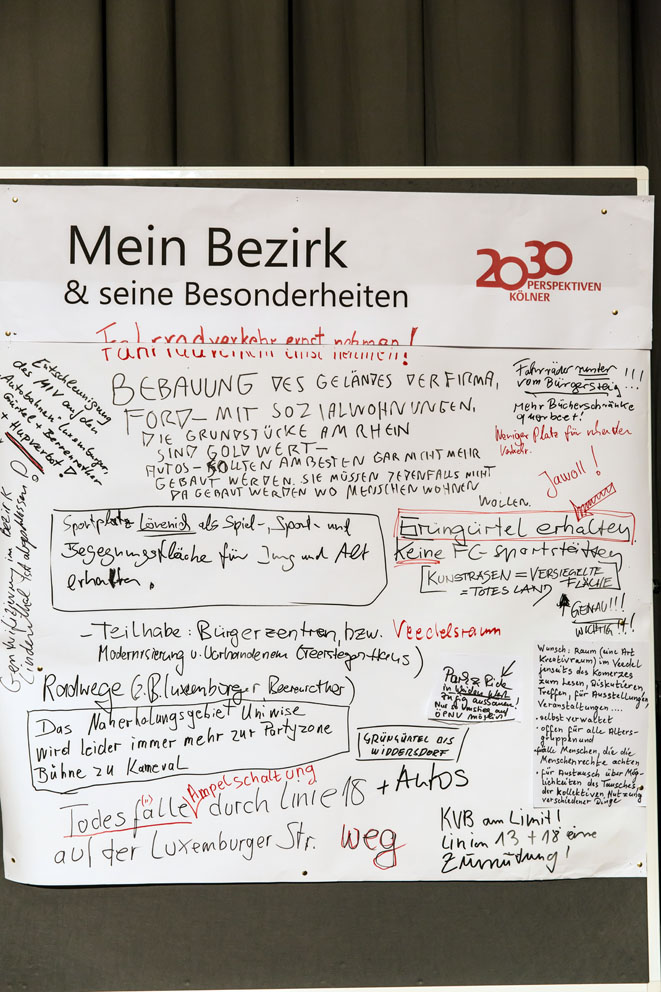 Der Einladung von Oberbürgermeisterin Henriette Reker zum dritten Stadtgespräch zur Frage "Wie wollen wir in Köln 2030 leben?" folgten etwa 250 Interessierte in das Hildegard-von-Bingen-Gymnasium. Ihre Anregungen, Hinweise und Ideen haben wir nachfolgend in einem Fotoprotokoll zusammengestellt.