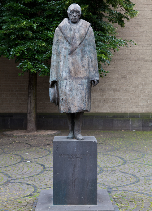 Das Adenauer-Denkmal steht bewusst an der Kirche Sankt Aposteln. Hier, schräg gegenüber, ging er über viele Jahre hinweg zur Schule, hier in der Nähe stand sein Elternhaus, so dass der Umkreis des kleinen Konrad ganz wesentlich in diesem Teil Kölns zwischen Neumarkt und Hahnentor gelegen hat. Die Apostelnkirche steht aber auch noch für einen anderen zentralen Bezugspunkt im Leben Konrad Adenauers: Seine Religiosität und Frömmigkeit. Von Geburt an bis zu seinem Tod war er katholischer Christ aus innerer Überzeugung. Der Mensch und der Politiker Konrad Adenauer ist daher ohne seine Verwurzelung im rheinischen Katholizismus nicht denkbar.