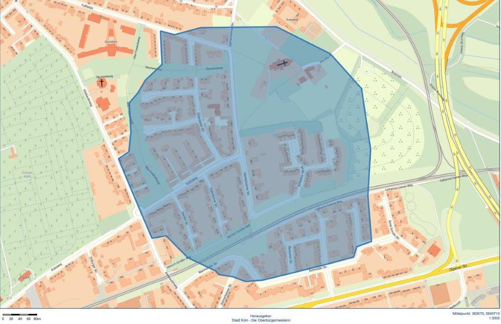 Der gesamte Bereich sollte aufgrund der Straßensperrungen großräumig umfahren werden. Insbesondere sind die Ostmerheimer Straße (von-Eltz-Platz bis „An der Fliehburg“) und der Kratzweg (von Kieskaulerweg bis Ostmerheimer Straße) gesperrt.