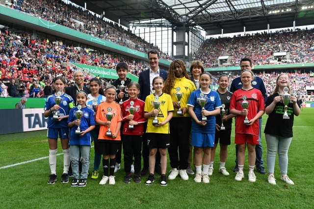 Im "Jahr der Schiris" wurde der 22-jährigen Amateurschiedsrichterin Sophie Burkhart eine besondere Ehre zuteil: Sie trug die Trophäe vor der Finalbegegnung ins Rheinenergiestadion. Köln hat das Pokalfinale der Frauen wieder zu einem Fußballfest für die ganze Familie gemacht. Bereits in den frühen Morgenstunden starteten die Fußballturniere des Fußball Verbandes Mittelrhein. 105 Mädchen- und Mixed-Mannschaften waren am Start – insgesamt 1.275 Teilnehmerinnen. Die Sieger*innen wurden in der Halbzeitpause von NRW-Ministerpräsident Wüst, der Kölner Oberbürgermeisterin Henriette Reker, der DFB-Vizepräsidentin für Frauen- und Mädchenfußball Sabine Mammitzsch sowie Rudolf Rheinstädtler, dem Vorsitzenden des FVM-Verbandsjugendausschusses geehrt.