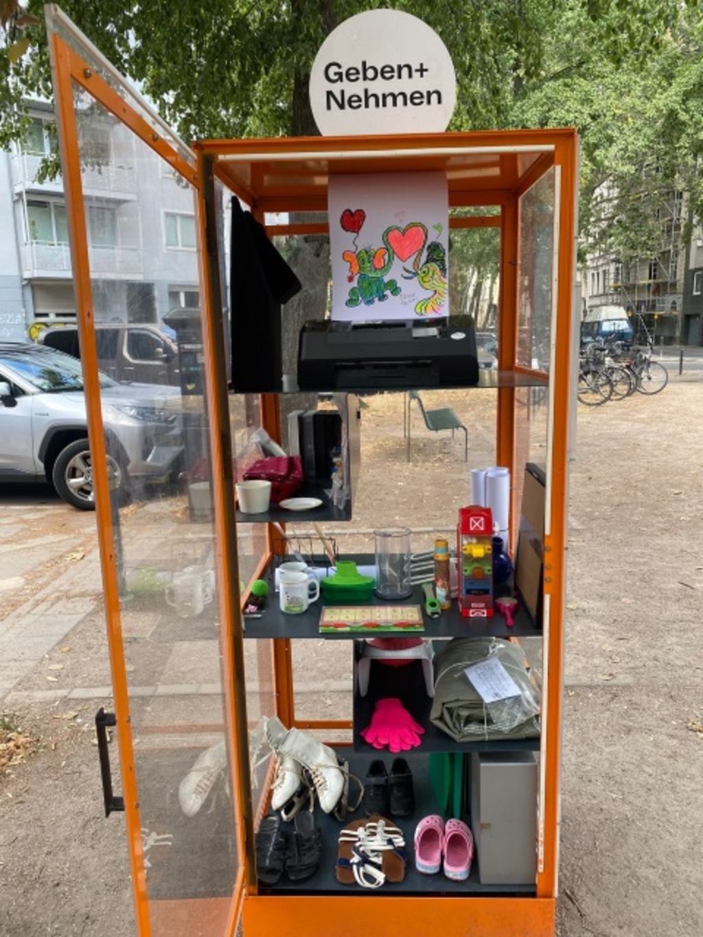 Die Aufstellgenehmigung des Tauschschranks am Eierplätzchen in der Kölner Südstadt wurde bis zum 21. Februar 2024 verlängert. Ähnlich wie ein Bücherschrank, bietet dieser einen regengeschützten Platz, um funktionstüchtige Gegenstände, die Kölner*innen nicht mehr brauchen, mit anderen zu tauschen oder zu verschenken.