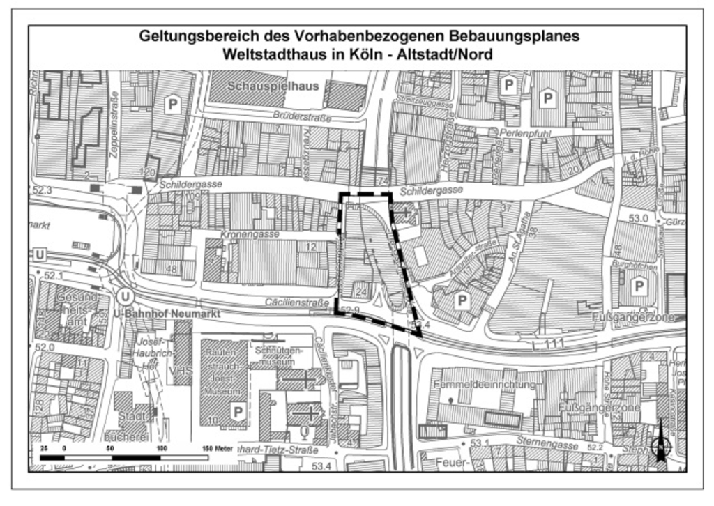 Das Weltstadthaus in der Kölner Innenstadt soll zukunftsfähig weiterentwickelt werden. Derzeit wird das Plangebiet überwiegend durch Peek & Cloppenburg genutzt. In der Zukunft soll das Angebot durch weitere Nutzungen ergänzt werden. Zum Bebauungsplan der Stadt Köln startet nun die frühzeitige Öffentlichkeitsbeteiligung.