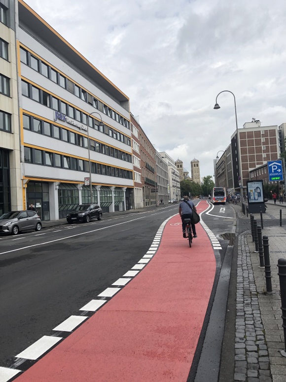 Zwischen Börsenplatz und Cardinalstraße wurden 2,50 Meter breite Radfahrstreifen unter Umnutzung einer Kfz-Fahrspur sowie von Parkplätzen eingerichtet. Im Bereich des Bushaltepunkts Gereonstraße wurde der Radfahrstreifen zur Erhöhung der Verkehrssicherheit der Radfahrenden komplett in rot eingefärbt. In westlicher Fahrtrichtung zwischen Tunisstraße und "Kattenbug" sowie zwischen Marzellenstraße und Stolkgasse wurden 1,50 Meter breite Radschutzstreifen markiert. Der Bereich Tunisstraße/Unter Sachsenhausen wird nach erfolgter Deckensanierung markiert.