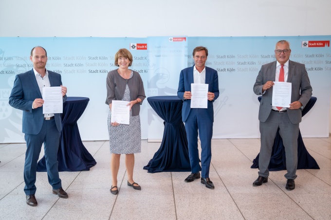 Die Stadt Köln macht Tempo bei 5G. Oberbürgermeisterin Henriette Reker am Donnerstagnachmittag, 20. August 2020, gemeinsam mit Vodafone, Vantage Towers, sowie den Stadtwerken Köln, der RheinEnergie und NetCologne den Grundstein für eine umfangreiche Zusammenarbeit beim Ausbau des hochleistungsfähigen neuen Mobilfunkstandards in der NRW-Metropole. Eine entsprechende Absichtserklärung wurde von Oberbürgermeisterin Henriette Reker, Dr. Dieter Steinkamp, dem Vorsitzenden der Geschäftsführung der Stadtwerke Köln, sowie Gerhard Mack, Chief Technical Officer der Vodafone Deutschland, und Matthias Mause, Managing Director der Vantage Towers unterschrieben. Ziel ist, den Netzausbau mit einem bundesweit einmaligen Modell schneller und kostengünstiger zu machen.