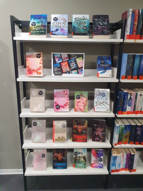 Nun erhalten die durch junge Trendsetter*innen empfohlenen Medien auch bei der Stadtbibliothek Köln ihren ganz eigenen Platz und sind – in der Zentralbibliothek am Neumarkt und in allen elf Stadtteilbibliotheken – auf den ersten Blick erkennbar: Eine Auswahl an Titeln, die ständig erweitert wird, bekommt spezielle #BookTok-Aufkleber, außerdem werden sie in eigenen Regalen und Aufstellern präsentiert und durch Plakate in frischer Ästhetik beworben. Und gerade auch im virtuellen Raum wird #BookTok selbst ohne eigenen TikTok-Account greifbar: So haben die Kölner Bibliothekar*innen zum Beispiel jetzt schon mehr als 100 E-Books und fast 80 Hörbücher in der App "Libby" für Audio- und E-Books – die im Rahmen einer Stadtbibliotheks-Mitgliedschaft kostenlos nutzbar ist – entsprechend gekennzeichnet.