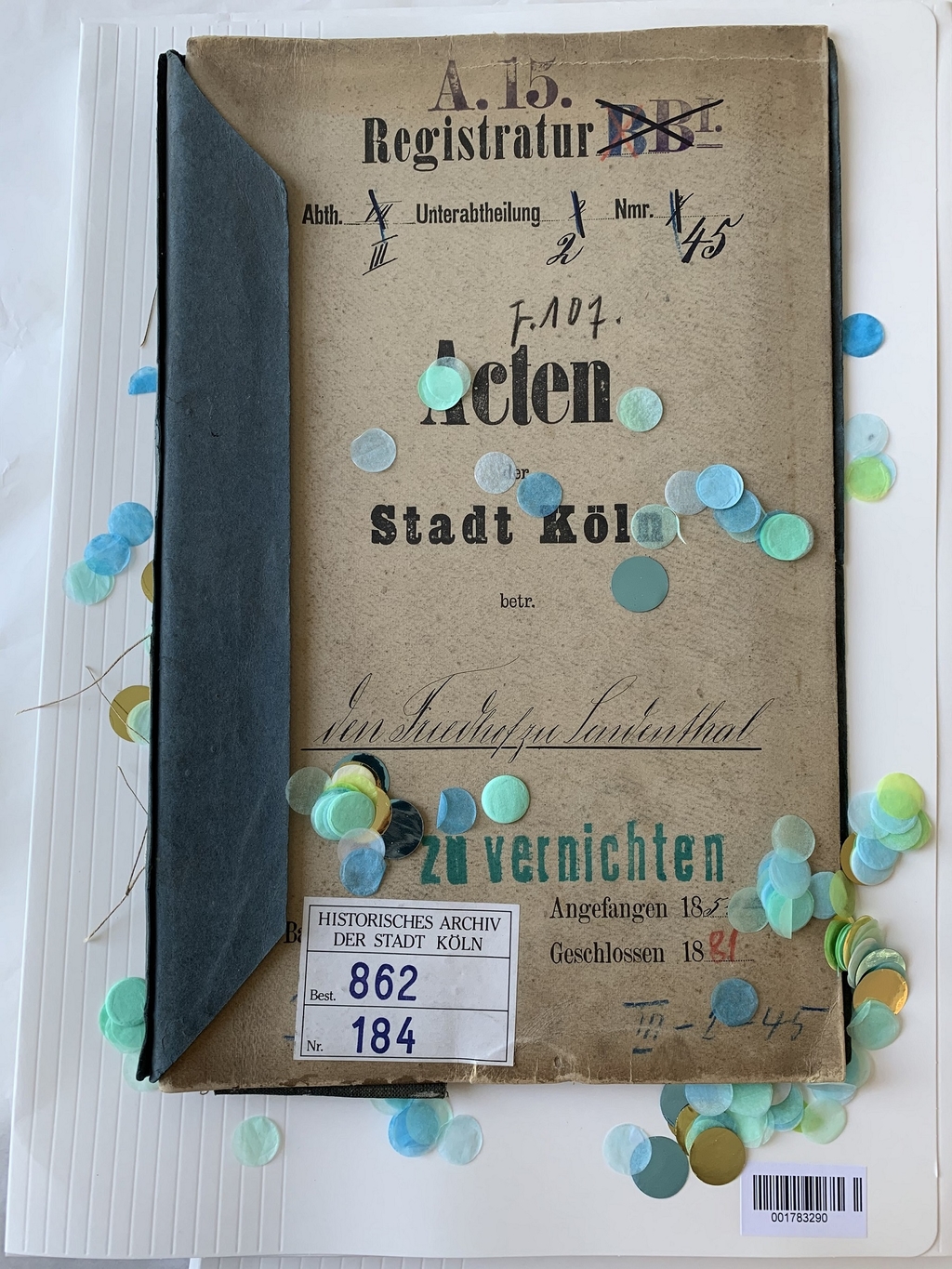 Mit dem Asylarchiv Düsseldorf konnte nun auch der letzte Außenstandort geschlossen werden. Dort erfolgte seit 2015 an rund 2.300 Tagen die Bergungserfassung für allein hier 9.125 Kölner Meter, verteilt auf 203.894 Bergungseinheiten. Hier wurde im Juli 2021 auch das letzte noch ungesichtete Archivale, das zuvor in den Asylarchiven lagerte erfasst: Ein zwischen der Gemeinde Kriel und dem Inhaber der Krankenanstalt Lindenthal "unter Vorbehalt der königlichen Genehmigung" im Jahr 1864 geschlossener Vertrag über die Nutzung eines Grundstücks für den Friedhof zu Lindenthal.