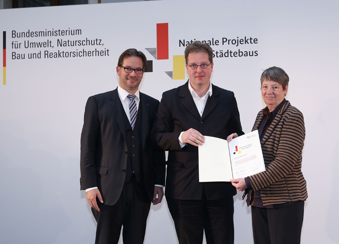 Der Bund hat die Vorhaben "Lebenswertes Chorweiler - ein Zentrum im Wandel" sowie "Via Culturalis" als "Nationale Projekte des Städtebaus 2015" anerkannt und mit Fördermitteln in Höhe von insgesamt fast zehn Millionen Euro aus dem gleichnamigen Programm bedacht. Franz-Josef Höing, Kölns Beigeordneter für Stadtentwicklung, Planen, Bauen und Verkehr, nahm in Berlin am heutigen Dienstag, 26. Januar 2016, für die Stadt aus der Hand der Bundesministerin für Umwelt, Naturschutz, Bau und Reaktorsicherheit (BMUB), Dr. Barbara Hendricks, die Förderurkunden für diese "Premiumprojekte des Städtebaus" entgegen. Die Stadt Köln erhält fünf Millionen Euro für das Projekt "Lebenswertes Chorweiler - ein Zentrum im Wandel" und 4,8 Millionen Euro für die "Via Culturalis" in der Innenstadt.