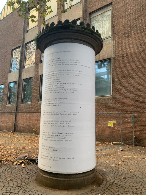 Die erfolgreiche Kunstaktion "Kunst an Kölner Litfaßsäulen" wird mit einem neuen, ungewöhnlichen und hoch aktuellen Motiv weitergeführt. Dawid Liftinger ist der Künstler, der seine Einkünfte, sein finanzielles Dasein, offenlegt und diese Zahlen auf den 25 Litfaßsäulen den Betrachterinnen und Betrachtern zugänglich macht.