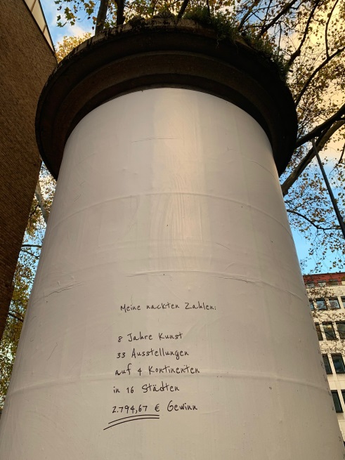 Meine nackten Zahlen" ist ein nüchterner Blick auf meine Ausstellungstätigkeit seit dem Beginn meiner künstlerischen Laufbahn und die dazugehörigen Honorare.