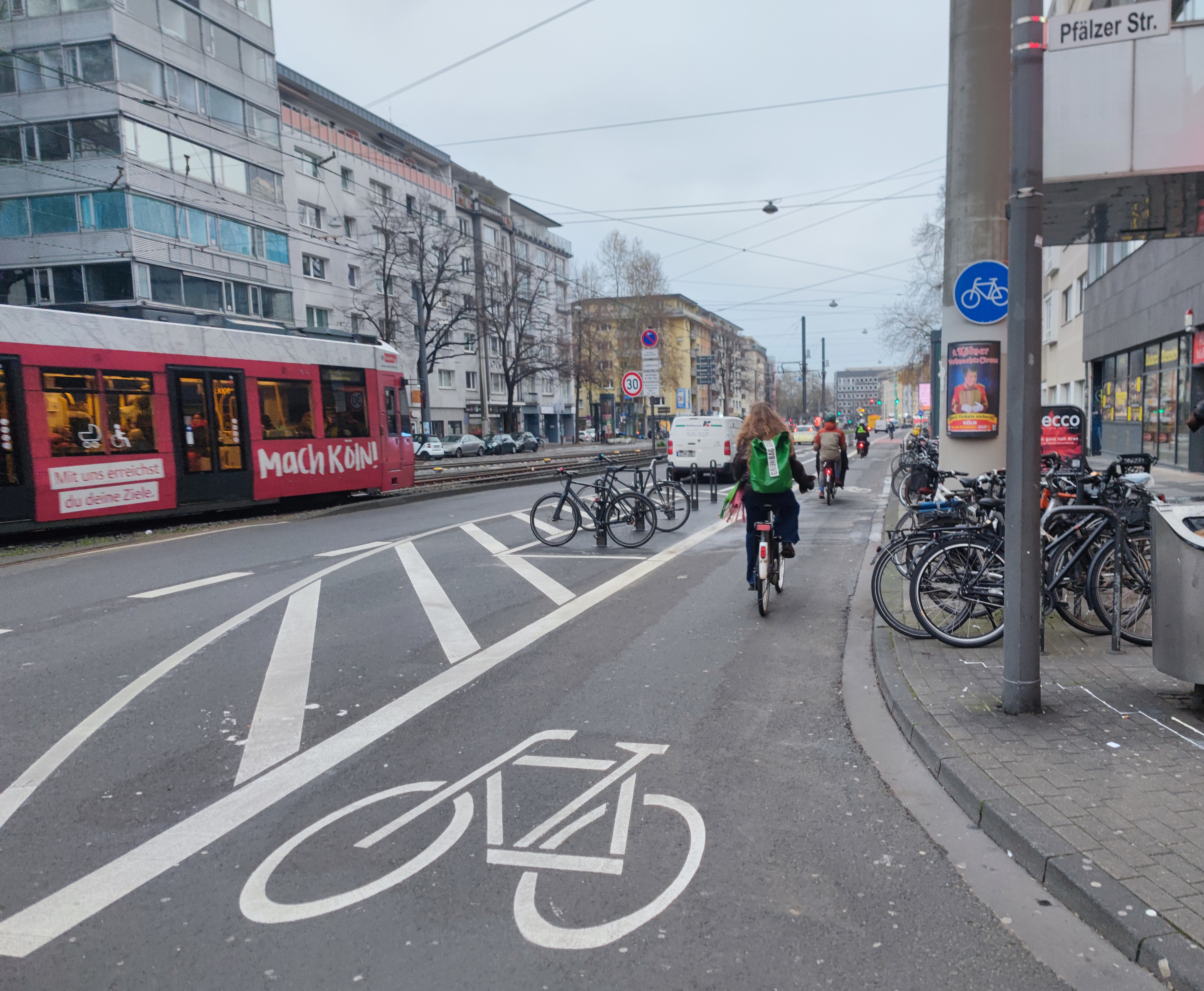 Auf insgesamt etwa zehn Kilometern Länge (fünf in jeder Fahrtrichtung) steht dem Radverkehr jetzt zwischen Hansaring und Ubierring eine durchgängige Radverkehrsführung nach Kölner Standard zur Verfügung. Nur an besonders engen Stellen wird der Radverkehr auf einem etwas schmaleren Schutzstreifen geführt.