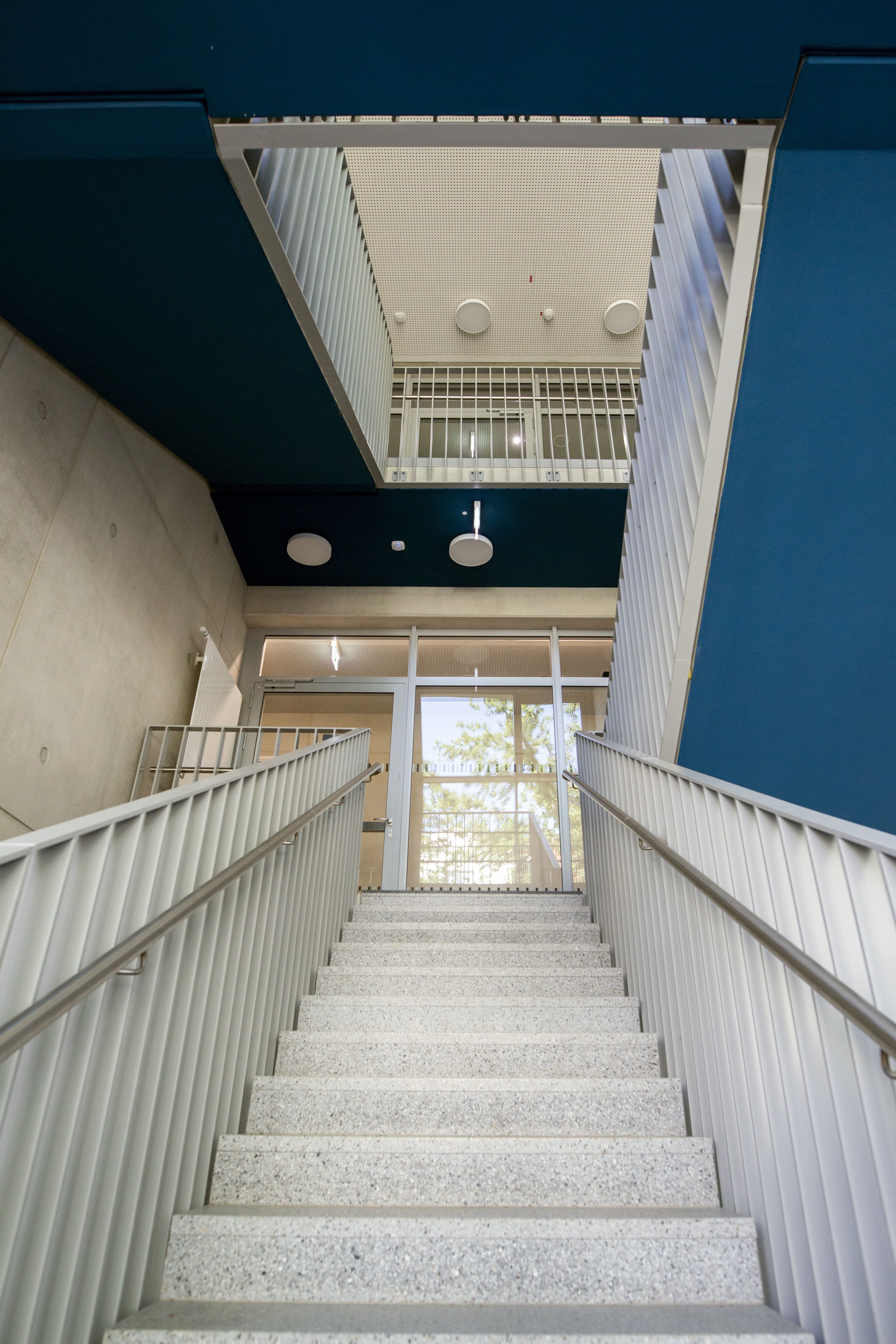 Schonung des Klimas und Energieeffizienz bei Errichtung und Gestaltung des Neubaus wurden beachtet. Dazu gehören auch die Nutzung von Fernwärme, Photovoltaikanlagen zur Stromgewinnung und an die Außentemperatur gekoppelte Sonnenschutzeinrichtungen und Wärmerückgewinnung über die Lüftungsanlagen. Das Gebäude wurde in Anlehnung an Passivhausbauweise gebaut. Für die Aufenthalts- und Lernqualität sind in puncto Temperierung, Raumluft bis hin zur idealen Beleuchtung und Schalldämmung die bestmöglichen Voraussetzungen geschaffen.