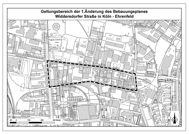 Für den Bebauungsplan der "Widdersdorfer Straße in Köln-Ehrenfeld" wird eine frühzeitige Öffentlichkeitsbeteiligung durchgeführt. Das rund 9,5 Hektar große Plangebiet der Bebauungsplanänderung liegt im Stadtteil Ehrenfeld und wird im Norden durch die Widdersdorfer Straße, im Osten durch die Oskar-Jäger-Straße, im Westen durch den Maarweg und im Süden durch die ehemaligen Gleisanlagen der Häfen und Güterverkehr Köln AG (HGK) und der Kölner Verkehrs-Betriebe AG (KVB) begrenzt. In Abstimmung mit dem Stadtplanungsamt hat ein Investor für das Plangebiet ein städtebauliches Konzept erarbeitet. Ziele der Planung sind beispielsweise die Umwandlung der Grundstücke Widdersdorfer Straße 199-205 und 207-211 vom Industriegebiet zum Gewerbegebiet, da die industrielle Nutzung nicht mehr vorhanden ist.