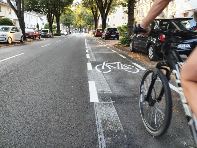 Die Stadt Köln hat auf der Mommsenstraße mit der Markierung eines einseitigen Schutzstreifens begonnen und setzt somit den Beschluss der Bezirksvertretung Lindenthal um. Im Abschnitt zwischen Bachemer Straße und Krieler Straße werden demnach neun Parkplätze zugunsten einer fahrbahnseitigen Radverkehrsführung umgewandelt. Von der Neuaufteilung der Verkehrsfläche (fahrbahnseitige Radverkehrsführung) profitieren in diesem Fall auch zu Fuß Gehende, da hierdurch Konflikte im Seitenraum reduziert beziehungsweise vermieden werden.