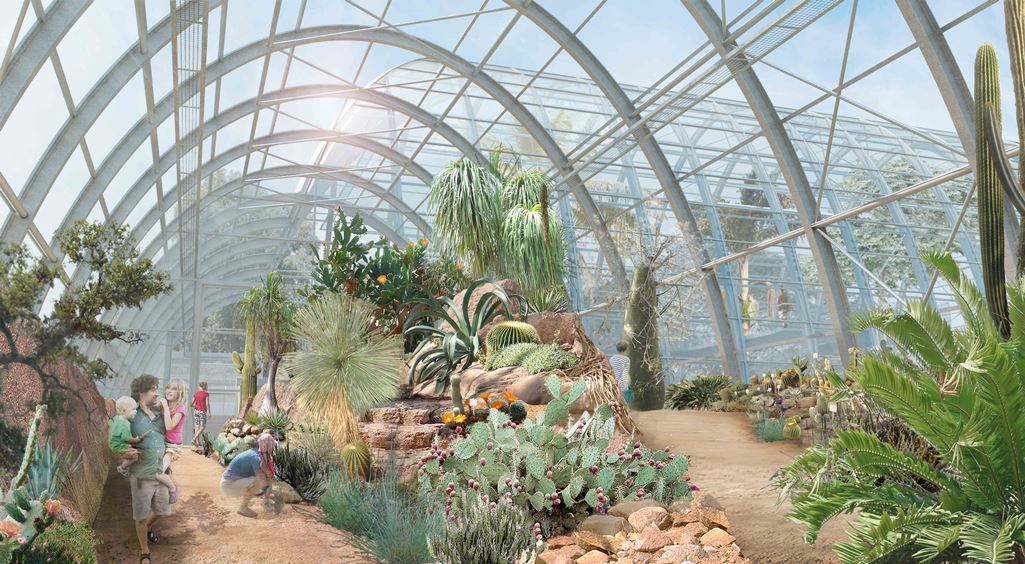 Nachdem im September 2017 der Bauantrag eingereicht wurde, folgen noch im Winter 2017/18 die Einrichtung der Baustelle für die neuen Schaugewächshäuser im Botanischen Garten und der Start der Abbrucharbeiten der Altbauten. Zuvor waren unter anderem die Pflanzen ausgelagert und die Betriebsgarage sowie eine Wasseraufbereitungsanlage an anderer Stelle neugebaut worden.