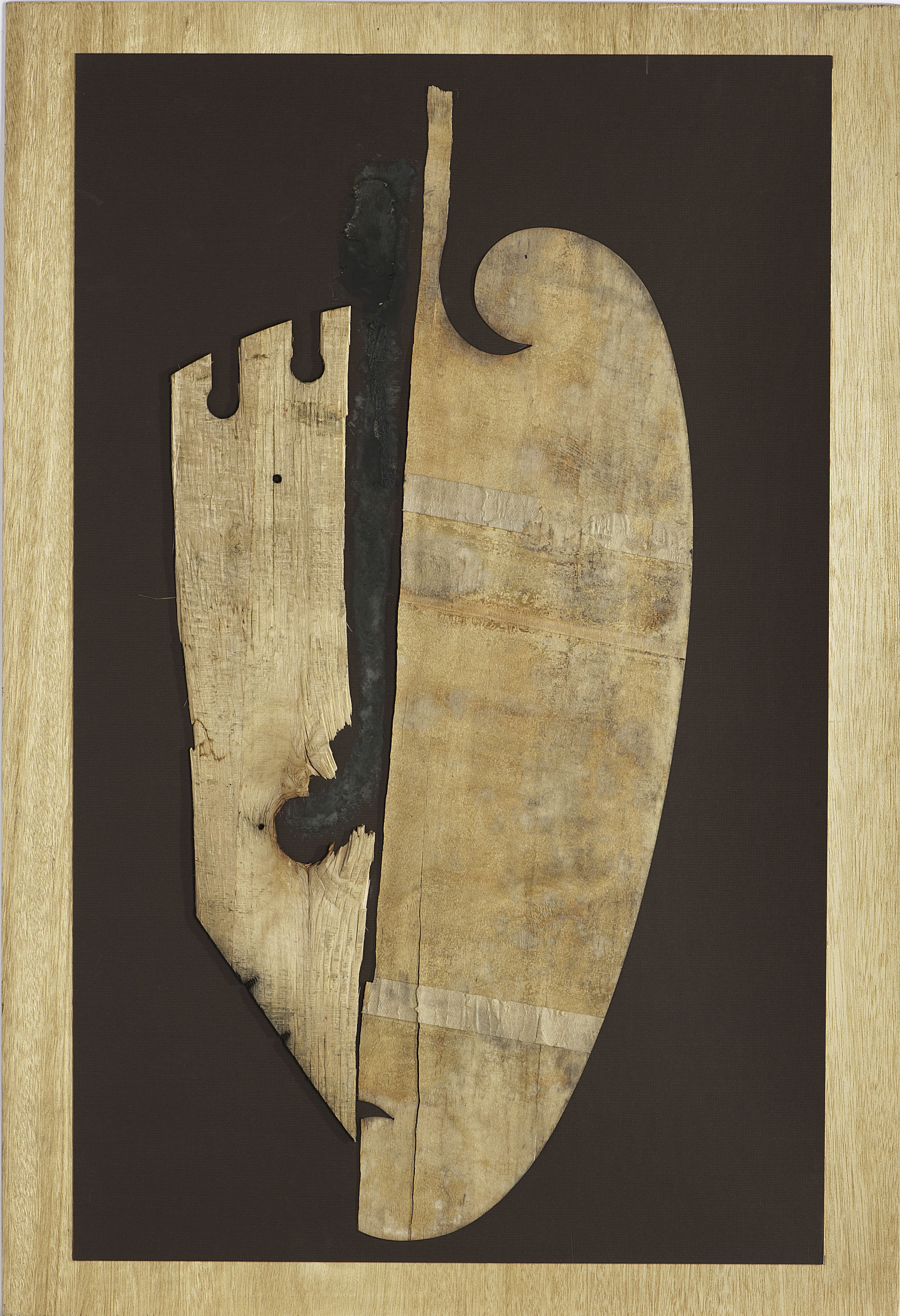 Ab den 1960er Jahren begann die Künstlerin, parallel zu ihren Skulpturen Collagen aus Fundstücken zu schaffen, die sie aber entweder nicht oder nur teilweise bemalte. Damit rückt die Farbigkeit der Elemente aus Holz, Furnier, Sandpapier, Karton in den Blick. Sie gewinnt in den Kompositionen eine eigene Bedeutung. Auch wenn die Relikte aus Gebrauchszusammenhängen stammen, erinnern sie in der auf die Bildmitte orientierten formalen Struktur an archaische Relikte. Das gesamte Oeuvre von Louise Nevelson kreist um das Collageprinzip, um die Kombination unterschiedlicher Gegenstandsfragmente, Formen und Materialien des alltäglichen Umfelds in neuen Zusammenhängen.