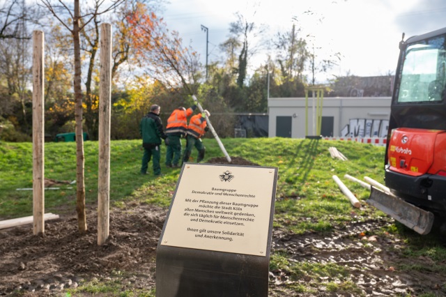 Am heutigen Dienstag, 28. November 2023, hat die Stadt Köln eine Gruppe von Bäumen im Friedenspark in der Kölner Südstadt gepflanzt. Im Vorfeld des Internationalen Tags der Menschenrechte am 10. Dezember gedenkt die Stadt Köln mit der Aktion aller Menschen, die sich für Menschenrechte und Demokratie einsetzen und solidarisiert sich mit ihnen.