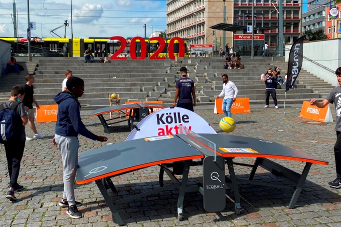 Im Sportpark Müngersdorf kann von Mittwoch, 16. September, bis Sonntag, 20. September 2020, die Trendsportart Teqball ausprobiert werden. Auf dem Parkplatz P5 an den Jahnwiesen hinter dem RheinEnergieStadion stehen die speziellen Tische täglich zwischen 16 bis 21 Uhr zur Verfügung, am Wochenende von 10 bis 18 Uhr.