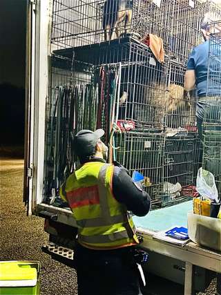 Zwei Fahrer hatten den Kleintransporter, der wegen entsprechender Werbeaufschriften auch nach außen hin als Hundetransport erkennbar war, gelenkt. In der geschlossenen Ladefläche von knapp zehn Quadratmetern wurden links wie rechts an den Seiten 52 Hunde und sechs Katzen in rund 30 Käfigen und mehreren Boxen gehalten. Die Käfige stapelten sich auf beiden Seiten in drei Reihen übereinander, teilweise befand sich mehr als ein Hund in einem Käfig. Es roch stark nach Urin, die Tiere waren verängstigt und gestresst. Nicht in allen Käfigen war ausreichend Wasser und Futter vorhanden. Außerdem herrschte eine große Wärme im Inneren des Laderaums. Eine ausreichende Überwachung des Vitalzustandes der Tiere während des Transportes war nicht gewährleistet. Wegen dieser Feststellungen alarmierte der Ordnungsdienst das Umweltamt. Dort war der Transport nicht angemeldet.