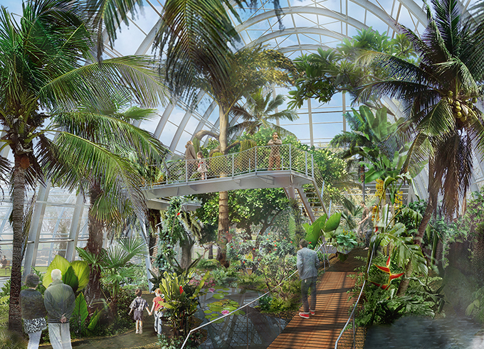 Die Kosten liegen nach derzeitigem Planungsstand bei insgesamt 11,4 Millionen Euro. Der neue Schaugewächshauskomplex soll nach den Plänen des Kölner Architekturbüros Königs bei bis zu knapp 17 Metern Höhe die notwendigen didaktischen Raumwirkungen entfalten. Die dargestellten Themen "Pflanzen ernähren die Welt", "Der Wert der Vielfalt" und das "Evolutionslabor Wüste" werden ab 2020 bei vollständig barrierefreiem Zutritt zu sehen sein. Die "Orangerie" vergrößert die Ausstellungsfläche für Sonderausstellungen, Kübelpflanzen und auch für die international ausgezeichnete Kamelien-Ausstellung im Winter.