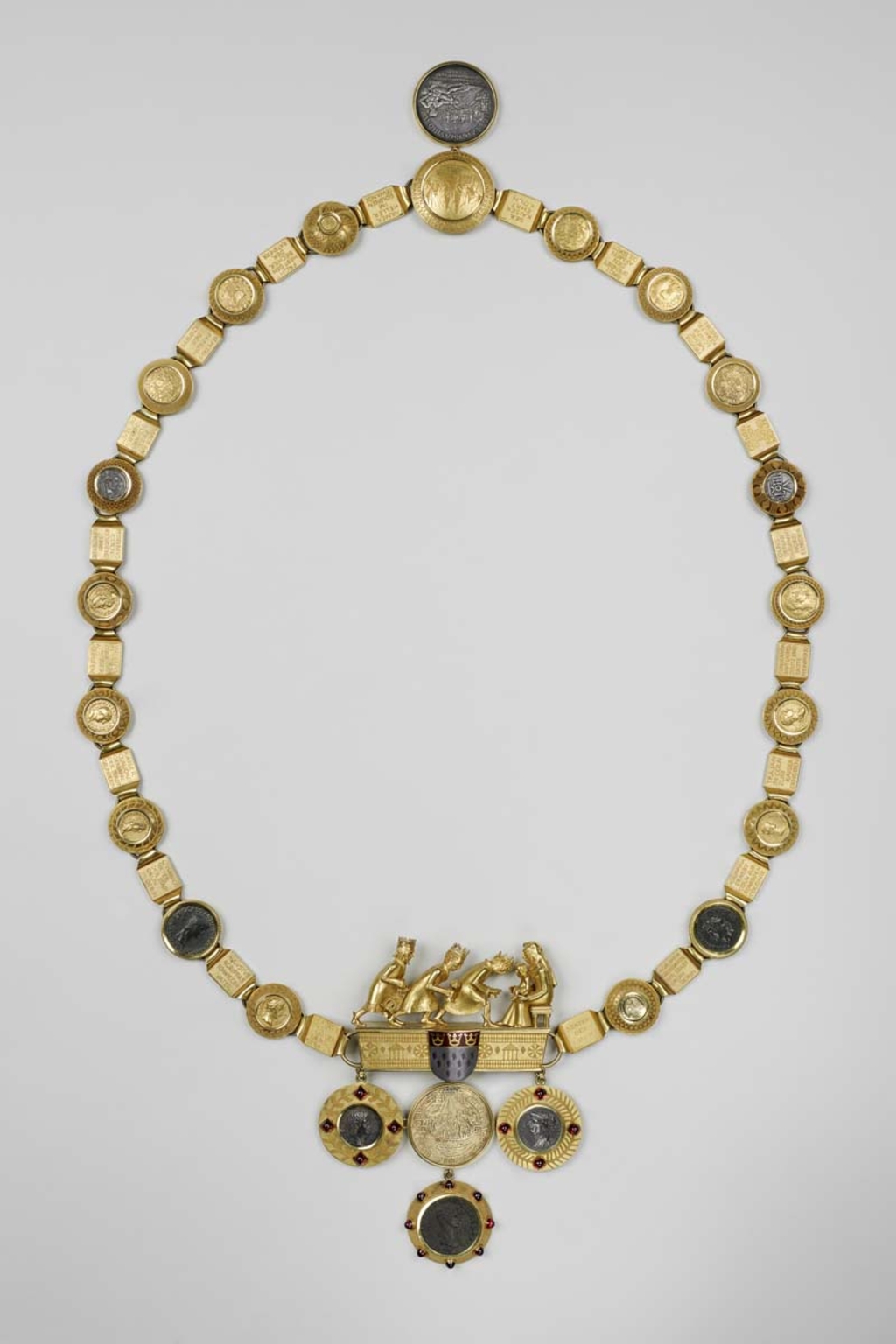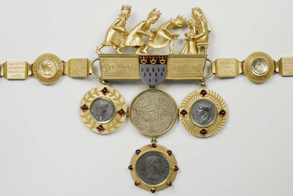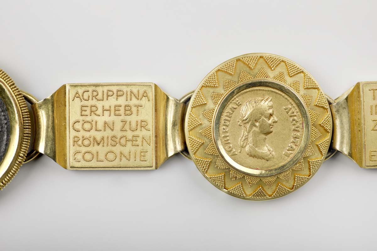 Die Goldschmiedin wurde beraten vom Direktor des Kölnischen Stadtmuseums Franz Brill. Beim Ankauf antiker Münzen mit Bildnissen von Herrschern half der Direktor des Römisch-Germanischen Museums Fritz Fremersdorf. Oberbürgermeister Ernst Schwering formulierte höchstpersönlich die erklärenden Inschriften auf den Zwischengliedern. So steht neben dem antiken Münzbildnis der Agrippina der Jüngeren: "Agrippina erhebt Cöln zur römischen Colonie". Denn das hatte diese römische Kaiserin 50 nach Christus getan, weshalb sie als Stadtpatronin gilt.