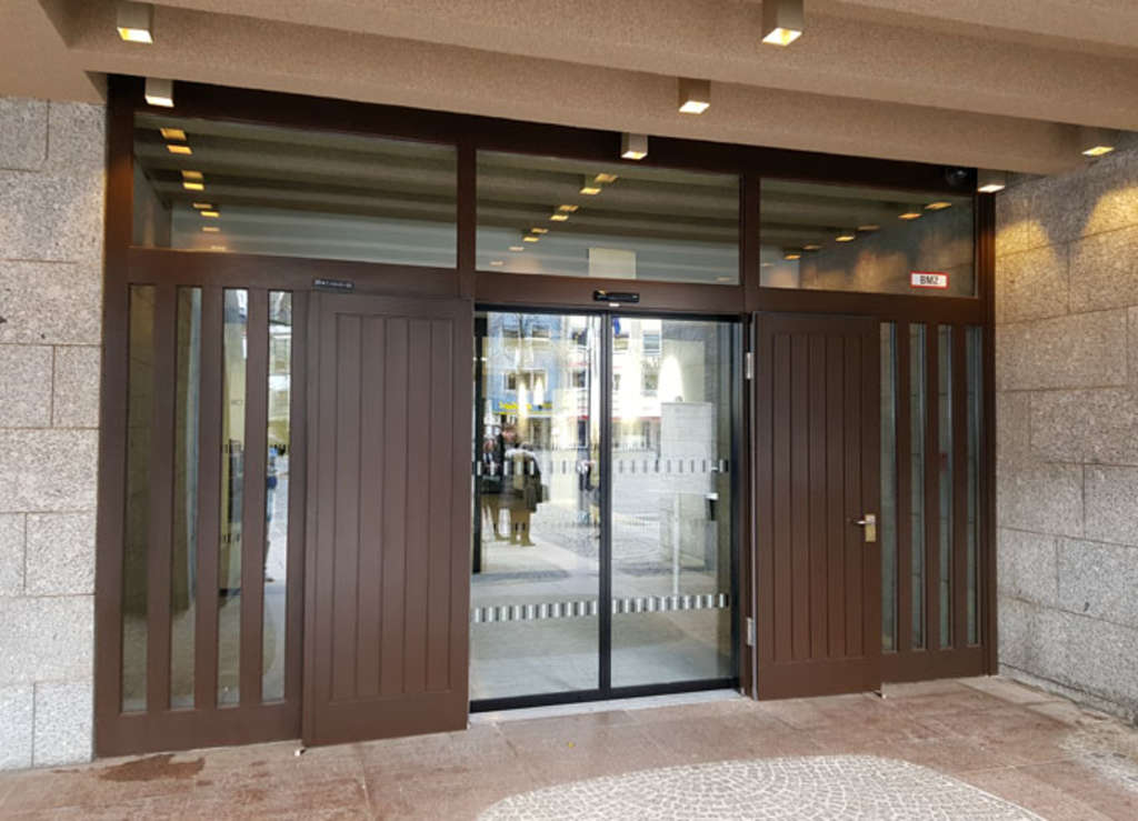 Seit 10. Januar 2018 ist der bisherige Haupteingang am Rathausplatz für Besucher*innen gesperrt. Grund sind Bauarbeiten für das "MiQua. LVR-Jüdisches Museum im Archäologischen Quartier Köln". Eine gut sichtbare Beschilderung weist Besucher*innen des Rathauses den Weg zum vorübergehenden Eingang.