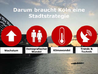 Wie viele andere Großstädte steht Köln vor vielfältigen Herausforderungen: Unsere Stadt wächst weiter, die Auswirkungen des Klimawandels machen sich bemerkbar, die Globalisierung verändert unsere Lebens- und Arbeitswelt und der demografische Wandel fordert neue Antworten. Diese Entwicklungen betreffen uns alle – im Alltag, im Berufsleben, in unseren Nachbarschaften. Die zentrale Frage lautet: