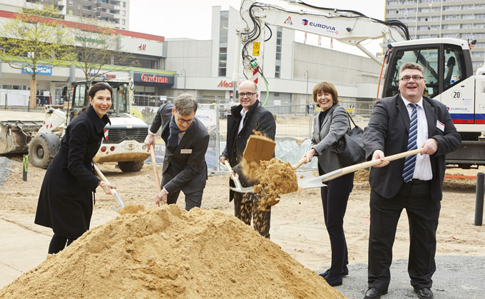 Den Baubeginn des Projektes feierten wir am 28. März 2019 mit dem offiziellen Spatenstich. Oberbürgermeisterin Henriette Reker und Baudezernent Markus Greitemann kamen, um die Baustelle feierlich einzuweihen. Anwesend waren außerdem Bezirksbürgermeister Reinhard Zöllner, die ECE, die einen Teil der Baukosten für den Umbau der Lyoner Passage übernehmen, das Planungsbüro Arge Chorweiler und Vertreter der Verwaltung und Politik.